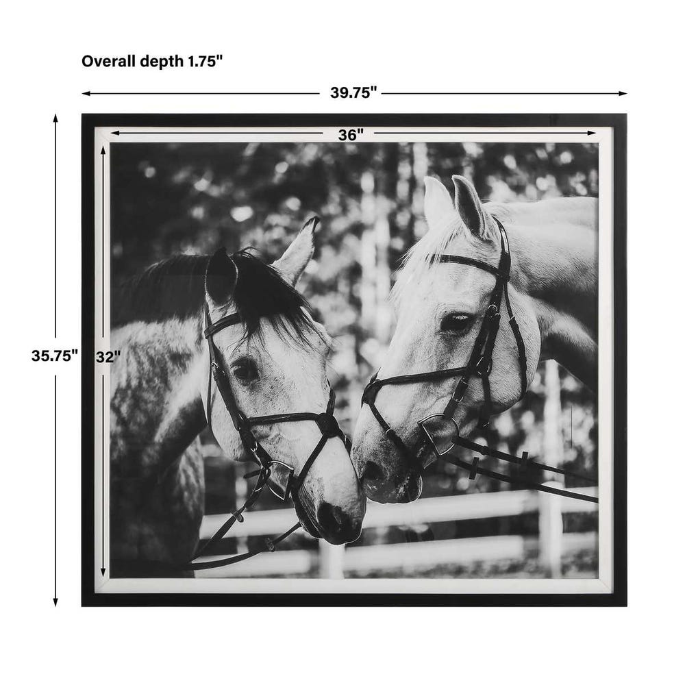 Ralph Waldo Emerson once said, "the eyes indicate the antiquity of the soul." As one part of a striking equine story, this artwork showcases an exclusive black and white portrait under glass with a simple satin black frame and white linen liner.