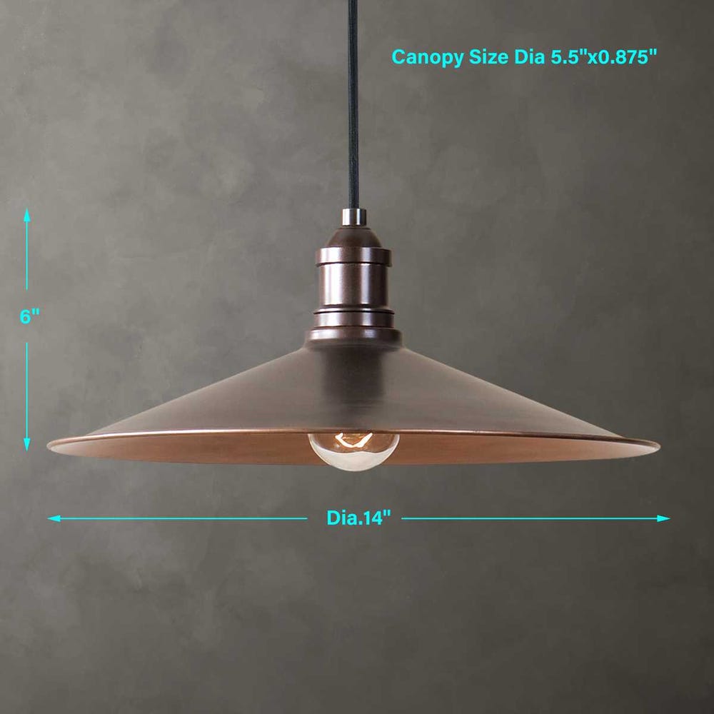 The antique copper finish adds a sleek look to this classic pendant. 1-100 watt max, Edison socket. Bulbs not included. Supplied with 15' cord for adjustable installation.