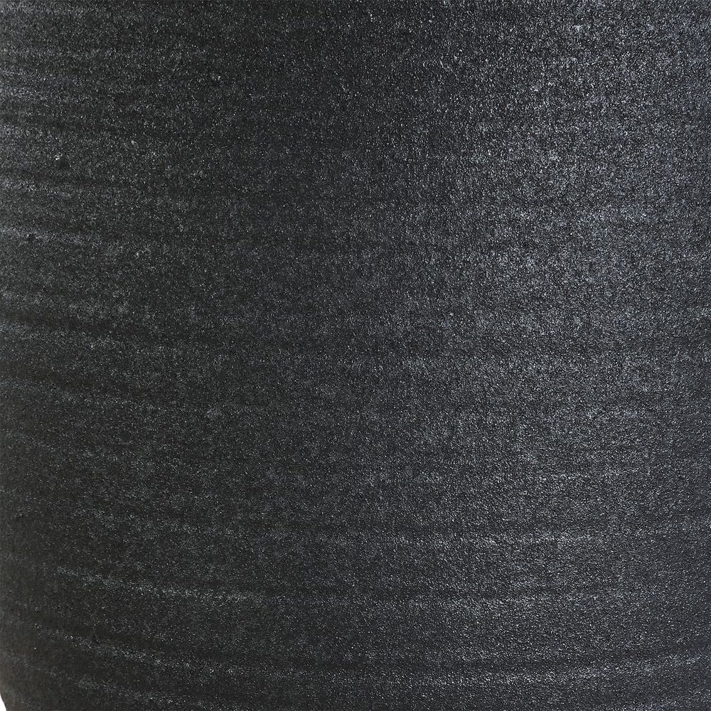 The Bower Table Lamp features a textured ceramic base finished in a modern matte black glaze paired with antique brass plated details. The tall, slightly tapered, round hardback shade covered in a casual white fabric with natural slubbing completes this piece.