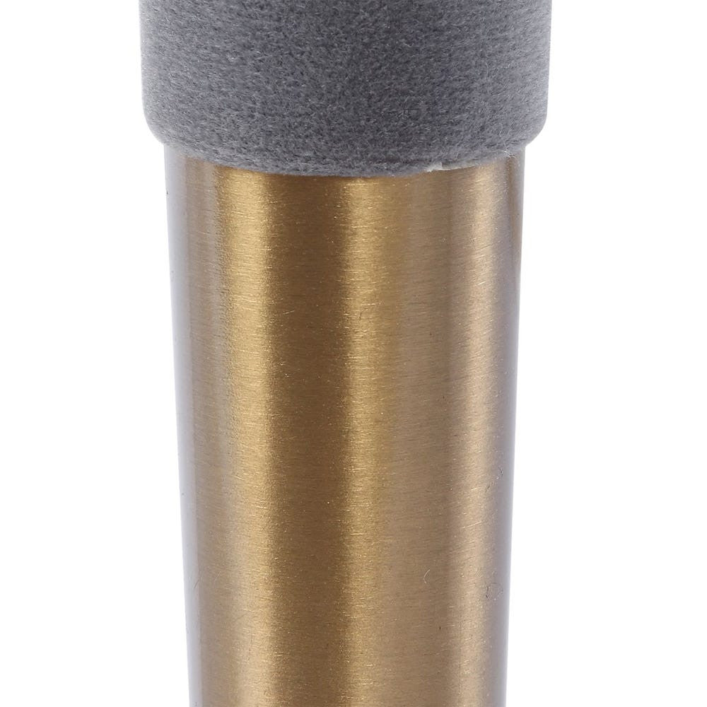 Perfect for modern dining, this armless chair features sleek lines covered in a light gray velvet with welted trim and accented with brushed brass ferrules.