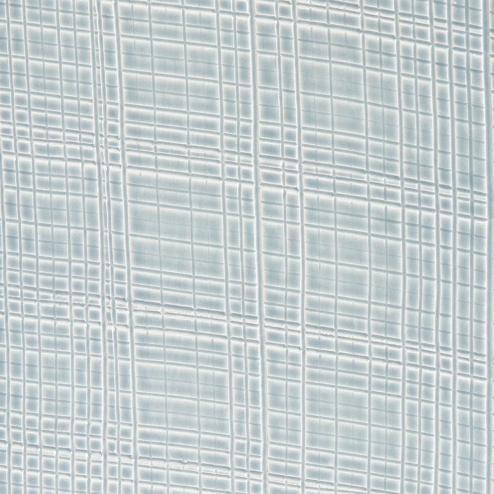 Textured ceramic finished in a pale blue gray glaze accented with plated coffee bronze details. The rectangle hardback shade is a rust beige linen fabric. Due to the nature of fired glazes on ceramic lamps, finishes will vary slightly.
