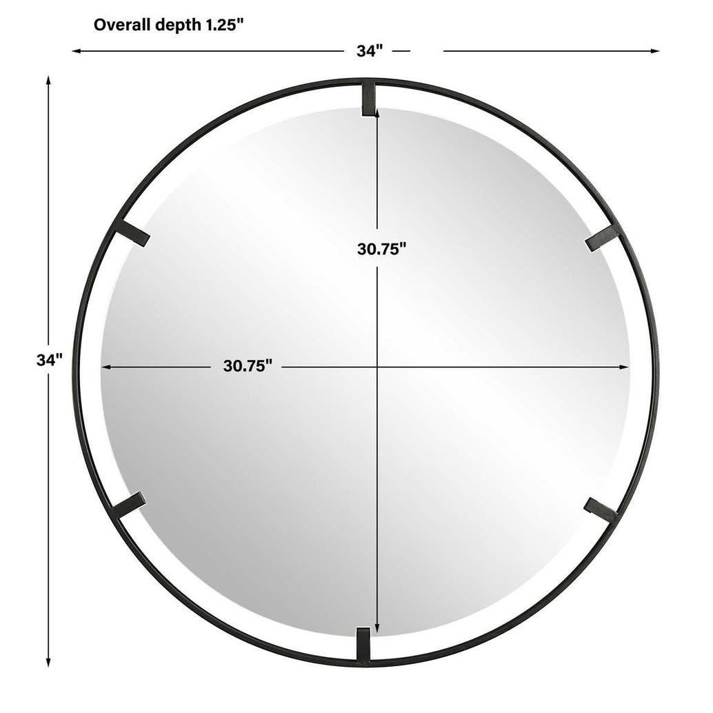 Refined iron frame finished in a sleek satin black, embracing a floating polished edged mirror.