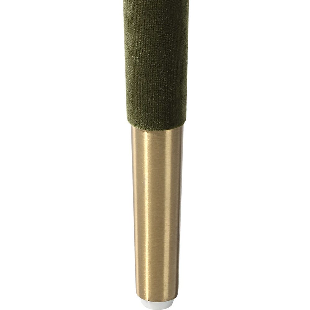 Perfect for modern dining, this armless chair features sleek lines covered in a moss green polyester velvet accented with brushed brass ferrules.