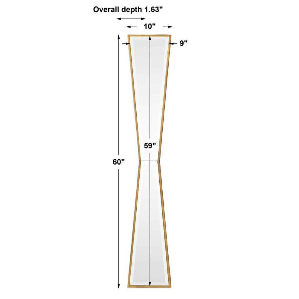 This bow tie design features a solid wood frame showcasing a delicate profile, hand finished in a lightly antiqued gold leaf. Mirror is beveled and may be hung horizontal or vertical. Sold individually.