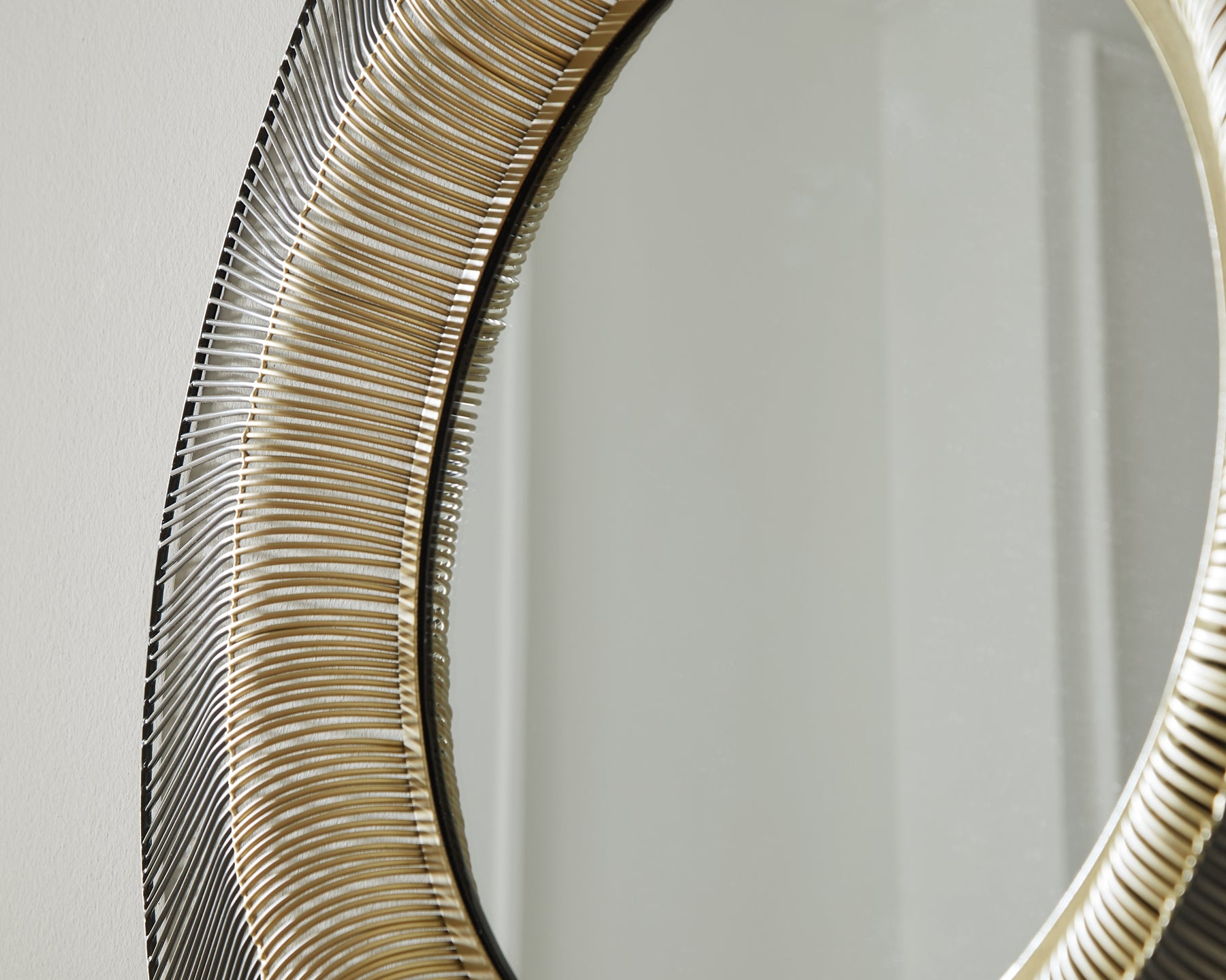 Make a statement with this accent mirror. Its curved sunburst design, with black beams and an inner goldtone ring, creates a striking piece, effortlessly elevating the spot where it shines brightest.