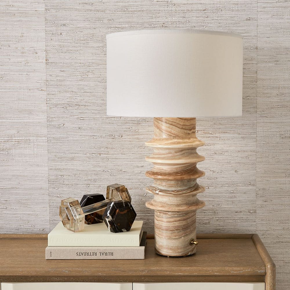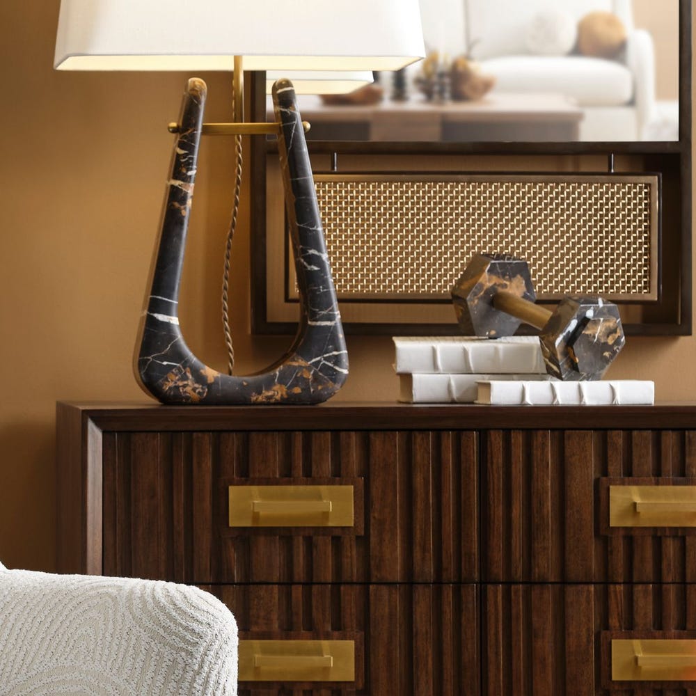 This handsome sculpture knows how to "work out" in any room. The Dumbbell Sculpture features Michelangelo marble ends and a knurled center rod finished in light antique brass.