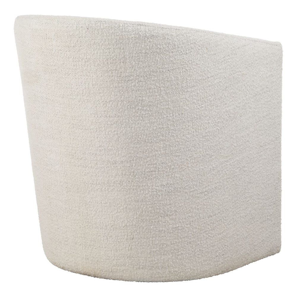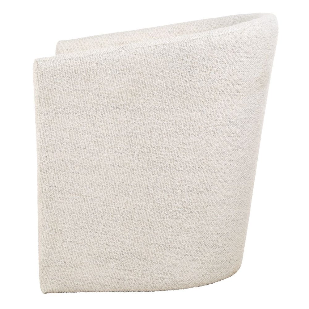 Designed with your comfort in mind, the Encompass dining chair features a barrel back shape that allows for ultimate leisure at the table. Upholstered in a textured white boucle with a toxin-free, eco friendly treatment to help resist water based stains.