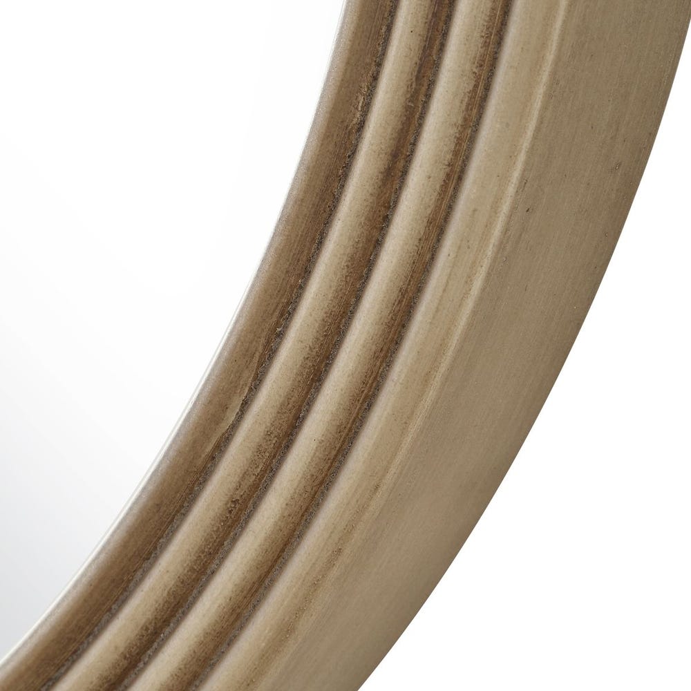 A modern twist on art deco design, this mirror breaks away from traditional shapes with its eye-catching silhouette. It features a sleek, wooden frame with grooved out channels finished in a light natural wood tone. The contrasting forms create a visually dynamic piece that complements both classic and contemporary interiors.