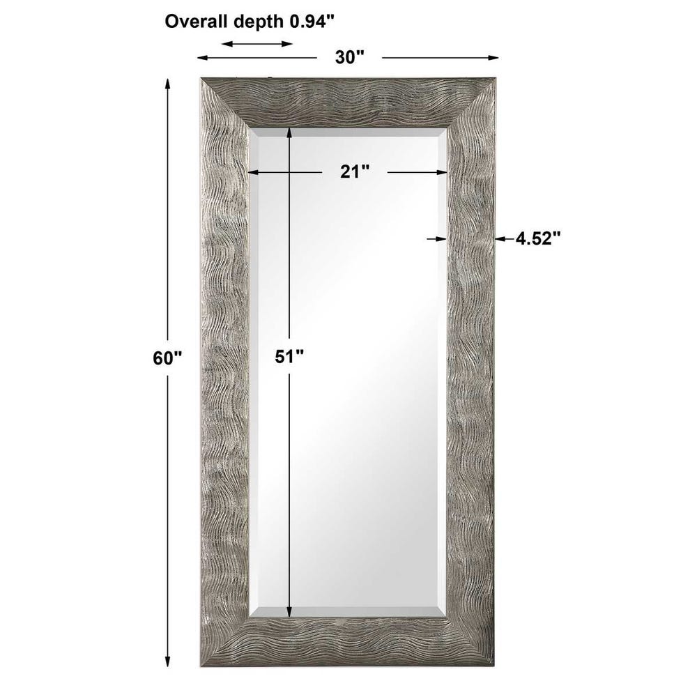 This contemporary piece has an animalistic behavior with its organic wavy texture, finished in a metallic silver. Mirror is beveled and may be hung horizontal or vertical.