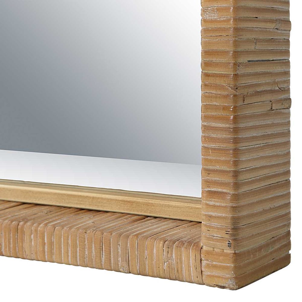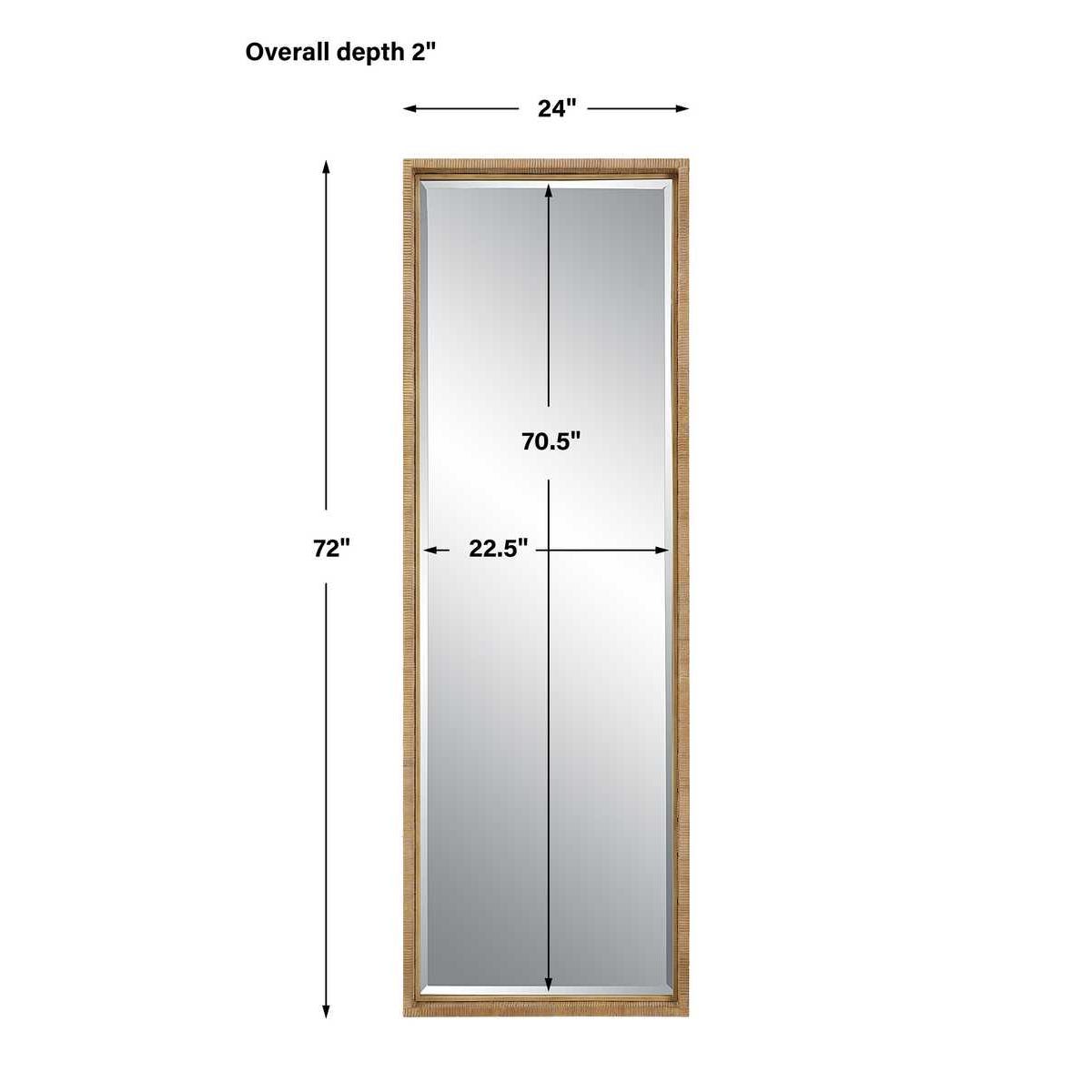 The perfect touch of natural elegance, this oversized mirror showcases a naturally finished rattan wrapped frame with an iron liner finished in a heavily antiqued gold leaf. Mirror has a generous 1 1/4" bevel.