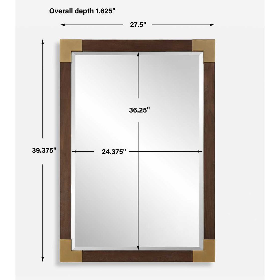 Embrace timeless elegance with our solid wood-framed mirror, finished in an aged walnut veneer. Each corner is adorned with delicately antiqued gold iron caps, adding a touch of refinement and sophistication to any room. Mirror has a generous 1 1/4" bevel. May be hung horizontal or vertical.