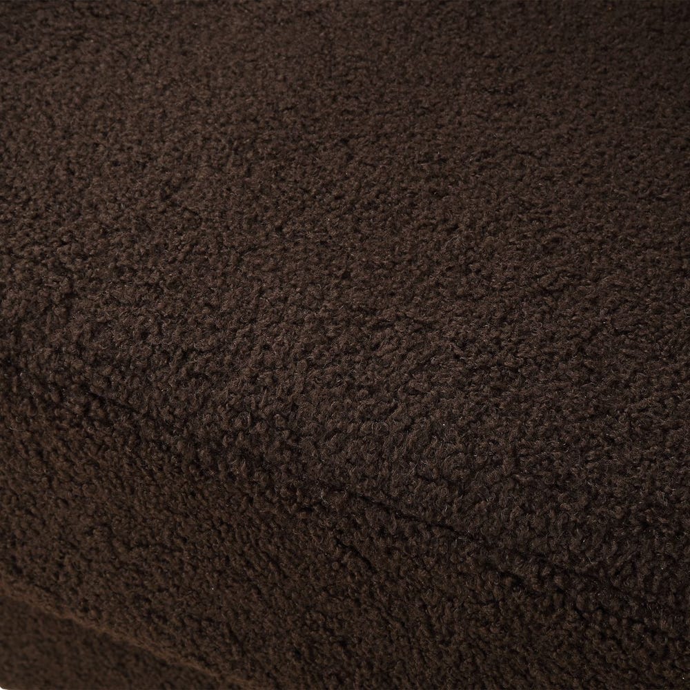 A classic wingback chair with a modern twist. Dramatic curved lines are accentuated by the rich chocolate faux shearling. Resting on solid wood tapered legs finished in weathered light walnut.