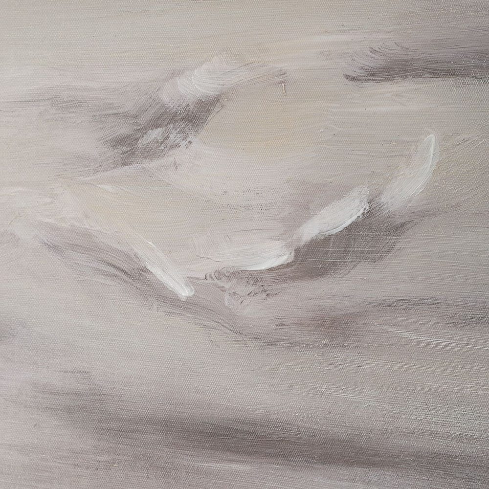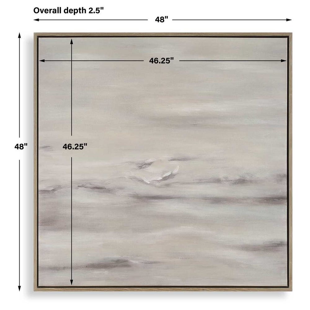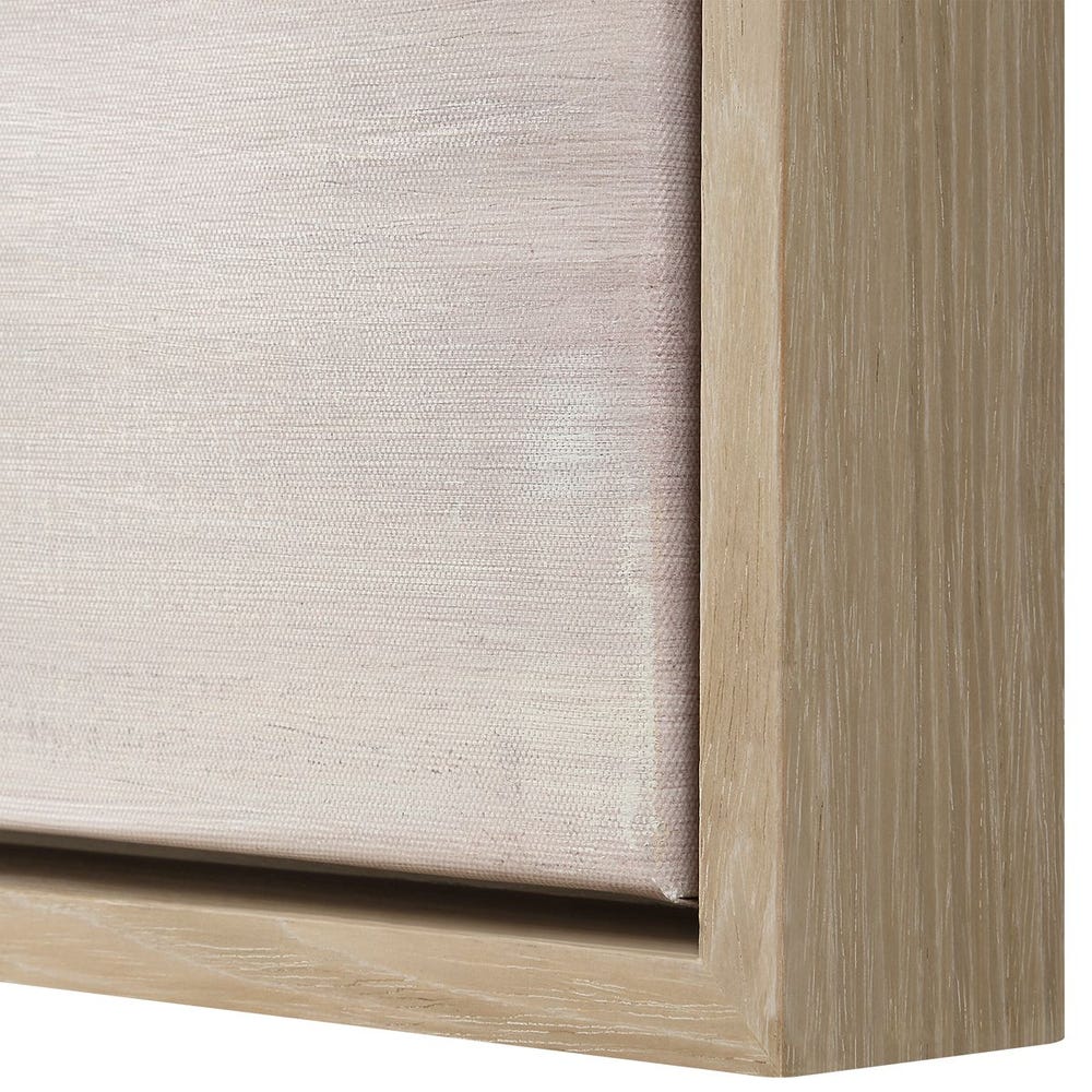 With its mesmerizing blend of soft, muted tones and ethereal design, Trance causes viewers to get lost in the movement on the canvas. It features a color palette of white, beige, and a hint of blush, all working together to mimic texture and light. This piece is surrounded by a pine wood frame with a light white wash. Due to the handcrafted nature of this work, each piece may have subtle differences.