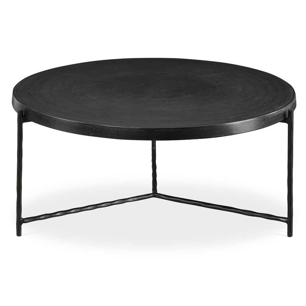 Modern textures are on display in the Trellick Coffee table. Featuring a cast aluminum top in oxidized black, resting within a chiseled black iron frame.